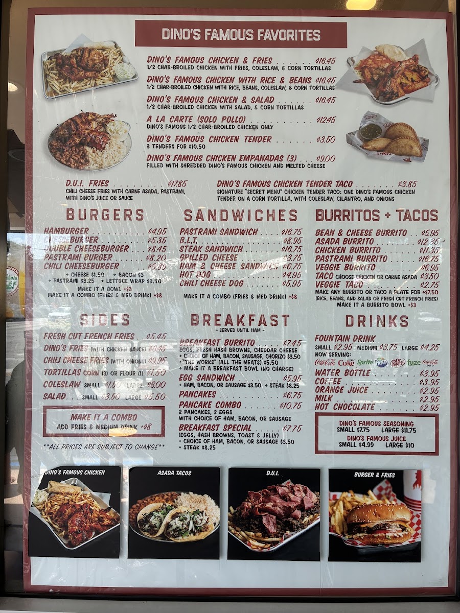 “ Dino's hand's down is one of my favorite spot to eat chicken when i visit back home in the L.A.area. I found this place back in my senior year in high school early 2000's, and you know what, the taste, the juiciness, the quantity, the quality, and the deliciousness, is all the same. Love how i can come back and visit and the flavor hasnt changed and its as good as my first time visiting. Keep up the great work. Highly recommend the chicken plate. Which ever way you like. Chicken is life!!!! ”