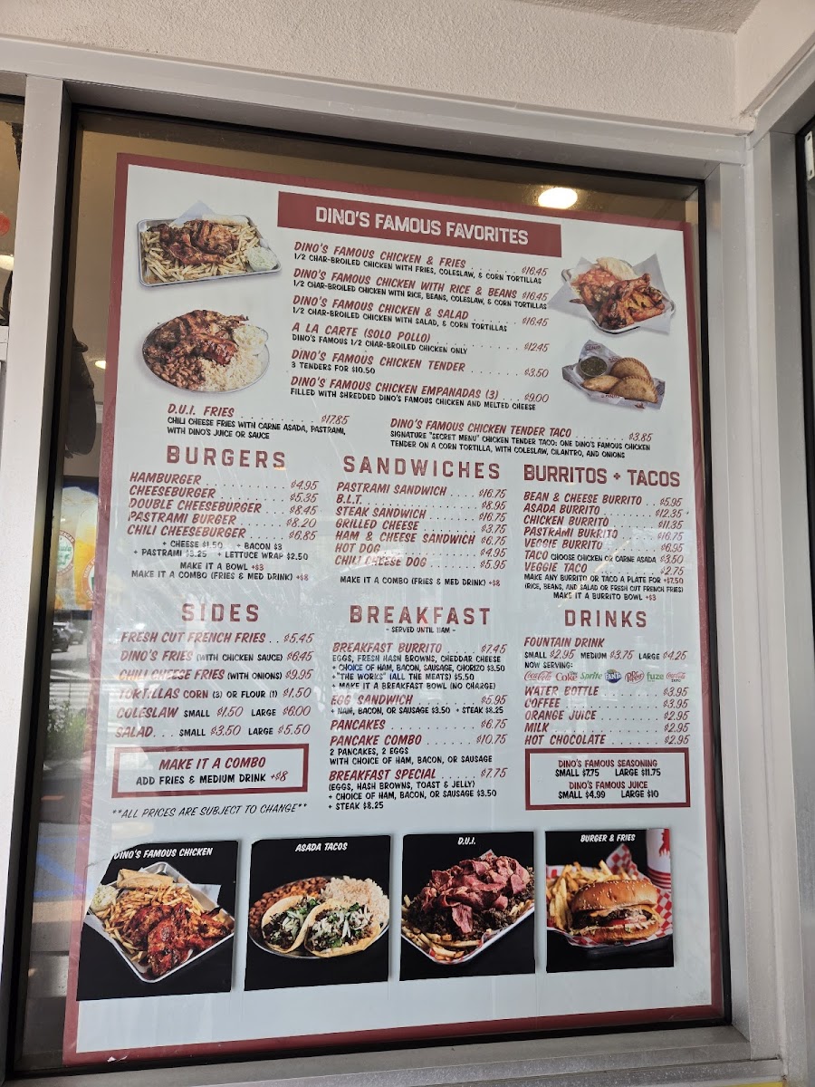 “ I didn’t know what to expect when coming here, but I’m sure glad that I did! I ordered a half chicken with rice and beans, which also came with complimentary coleslaw and corn tortillas. The rice and beans were absolutely incredible! They were obviously slow-cooked and have been perfecting the recipe for years. The chicken was great, too, and I’m impressed it was juicy and tender when being cooked in such huge batches. Even the coleslaw was great! Dino’s might not look like that much from the outside, and they only have basic hard-back booths and bar seats, but the food is so good I’d eat it sitting on the sidewalk. It was also only about $15 for a massive portion of food. I definitely want to come back here to try other items in the future. ”